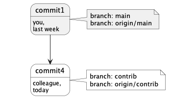 - Branch “contrib” currently points to commit4, the work of your colleague.